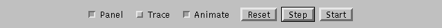 This panel controls the operation of the Engine. To clear the Mill and Store to their start-up conditions, press the “Reset” button. After a calculation is successfully submitted, you can cause the Engine to process it by pressing the “Start” button; while a calculation is in progress, the legend on the “Start” button changes to “Stop” and can be used to halt the Engine at any point. The “Step” button amounts to one turn of the crank—the Engine processes the card currently in the reader, advances to the next card, and halts. “Step” is useful in conjunction with the Annunciator Panel when you want to examine a calculation in detail. When “Panel” is checked, the Annunciator Panel (see below) is shown; this allows you to watch the Mill, Card Reader, and Store in operation. “Trace” causes the Attendant to write a trace of the calculation in the Attendant's Log panel, without the need to include a “T1” card in the card chain. When “Animate” is checked, pressing “Start” causes the Engine to process about one card per second, showing the results on the Annunciator Panel, if displayed.