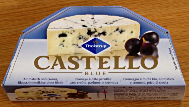 Based on further taste testing and adjustments, I arrived at the recipe at the right, which is now my standard; I have made numerous batches of it and find no need for further adjustments. I have re-scaled the recipe around 150 g of “Castello” Danish Blue cheese because it is sold pre-packaged in that quantity in Swiss supermarkets. I find the 50% larger batch size more convenient; I like this stuff so much that I'm guaranteed to finish it before it goes all entropic.
