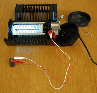 I'm way too cheap to be happy with such a state of affairs, so I decided to open up a failed bug zapper and see what was going on. The source of the problem proved to be as simple as I expected and as straightforward to remedy, so in the hope of saving somebody else the trouble of figuring it out, I've scribbled these notes on how to repair your own bug zappers. These instructions pertain to bug zappers made by the Windhager company of Salzburg, Austria, who have a dominant market share in this obscure industry here in Central Europe. Obviously, if you have a bug zapper made by another company, it's going to look different inside and may conceivably use an entirely different circuit for the fluorescent lamp.