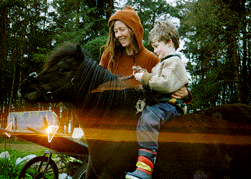 Janie gives a child a ride on Marein.
