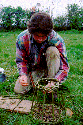 weaving traditional Irish willow baskets.