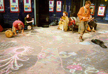 busking expedition to raise money for the rainbow gathering's "magic hat"