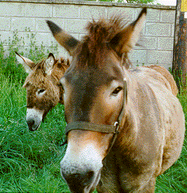 Isun (donkey) and Zymbii (jenet - a sort of reverse mule) at John and Patricia