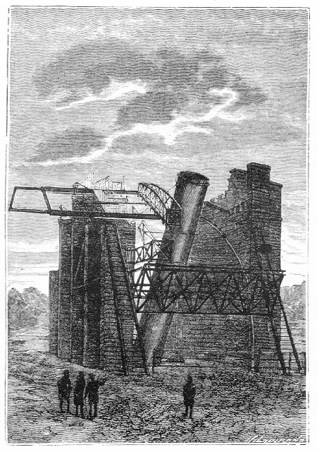 On sait, en effet, que l'instrument monté par John Ross à Parson-town, dont le grossissement est de six mille cinq cents fois, ramène la Lune à seize lieues ; de plus avec le puissant engin établi à Long's Peak, l'astre des nuits, grossi quarante-huit mille fois, était rapproché à moins de deux lieues, et les objets ayant dix mètres de diamètre s'y montraient suffisamment distincts.