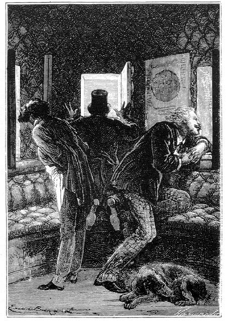 Aucun des voyageurs ne pensait à prendre un instant de repos. Chacun guettait quelque fait inattendu qui eût jeté une lueur nouvelle sur les études uranographiques. Vers cinq heures, Michel Ardan distribua, sous le nom de dîner, quelques morceaux de pain et de viande froide, qui furent rapidement absorbés, sans que personne eût abandonné son hublot, dont la vitre s'encroûtait incessamment sous la condensation des vapeurs.