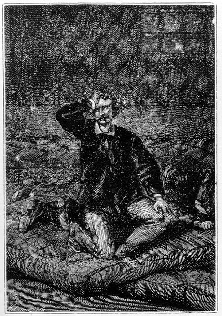 « Diable ! dit-il. Ils ont l'air d'être tombés d'un cinquième étage sur la tête ! Bah ! ajouta-t-il avec cette imperturbable confiance que rien ne pouvait enrayer, si un Français a pu se mettre sur les genoux, deux Américains ne seront pas gênés de se remettre sur les pieds. Mais, avant tout éclairons la situation».