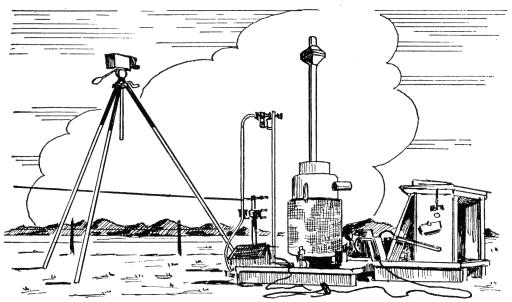 The Test Organization has a major safety program for anticipating where blast may strike. One item is the firing of high explosive shots prior to the nuclear test, with the blast being recorded on sensitive instruments in communities around the proving ground. If the weather remains constant these provide a good indication of where blast will strike, but if the atmosphere changes only slightly the blast may vary by miles. If strong blast is indicated for any community, the shot may be postponed.