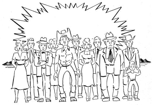 The locations of the radiation monitoring stations in the test site region are shown on a map inside the back cover. The whole region has been divided into zones, each of which has one or more headquarters locations. At each headquarters there is a zone commander from the U. S. Public Health Service. He directs fellow USPHS employees in the field as they monitor fall-out beneath the atomic cloud. Field monitors can be shifted from one zone to another as required. All monitors are supervised by the Test Organization.