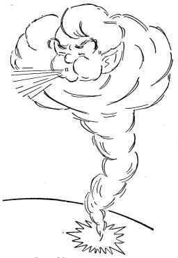 For example, people in Las Vegas have noted during the day after an early morning test that a wind storm moved in from the northwest, seemingly from the test site. They haven't always realized that the same storm was moving toward them across California at shot time, and the Test Organization was taking advantage of the calmer period before the storm in order to control test effects. To a Tonopah resident, the sequence would have been different as he could have seen the early morning flash in the southeast, then watched the clouds move in from the northwest.