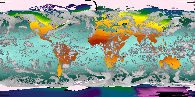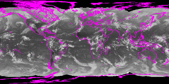 Programs and Web resources which require current weather data may obtain these raw images from the following links. These images are updated no more than four times a day--downloading them more frequently is counterproductive and, in case of egregious abuse, may result in denial of access to Fourmilab.