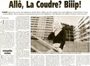 third, completely unrelated, cable was cut about five kilometres on the other side of Fourmilab. Swisscom attributed the reports of outages by customers served by this cable to the two they were already working on, and only finally twigged to the actual problem when fixing the first two cables didn't make it go away; some people were cut off from land-line telephone service for as long as 30 hours.