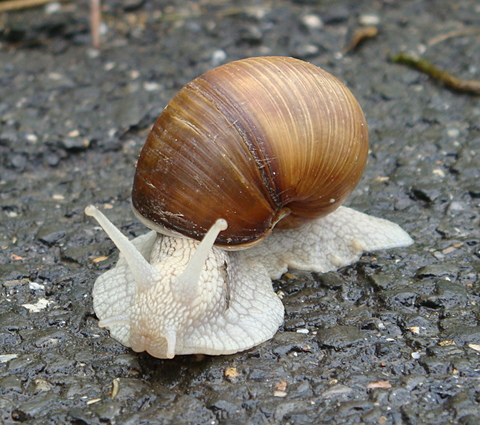 Helix pomatia), one of the species commonly farmed for food. If I've misidentified it, I'm sure one of the multitude of snail experts who frequent this chronicle will correct me and I'll post an update posthaste.