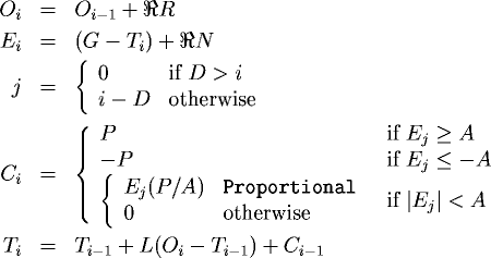 Nonetheless, here is the mathematical basis of the model. From these equations you can implement the simulation in another spreadsheet or as a standalone program. The parameters that control the model are identified by their labels on the FEEDLAB control panel.
