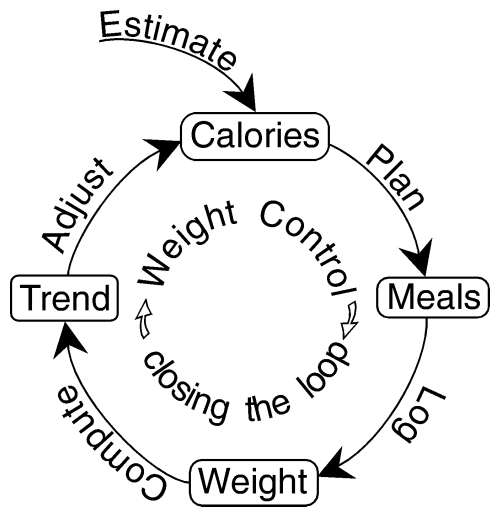 It's time to pull together all the seemingly disjoint threads in the previous chapters into a unified whole. We already know what we need: a proportional control negative feedback system that tells how much to eat. All the pieces of that system are now in hand. We need only hook them up into this; the solution to the problem of weight control.