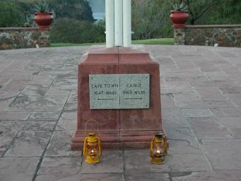 | The Victoria Falls Hotel was built in 1904 to accommodate passengers on the "Cape to Cairo" railway envisioned by Cecil Rhodes. The British Empire ended before the railway got anywhere close to Cairo, but the flagpole at the hotel recalls the dream. |