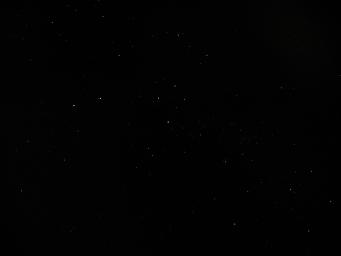 | The night sky in Botswana is awe inspiring. One regret was that the 12 kg luggage restriction imposed by bush planes precluded bringing a telescope to explore the wonders of the southern sky under such ideal conditions. The Olympus 3040 digital camera I used for all of these photos has a f/1.8 lens, CCD sensitivity equivalent to ISO 400 film, and a maximum exposure time of 16 seconds, so I decided to see what I could do with the equipment at hand. I set up the camera on the folding tripod I used for the eclipse photos and took this 16 second time exposure of the Southern Cross, with Alpha and Beta Centauri visible to the left. The sensitivity of the camera was not, regrettably, sufficient to capture the Milky Way, which extended from horizon to horizon in the moonless sky. |