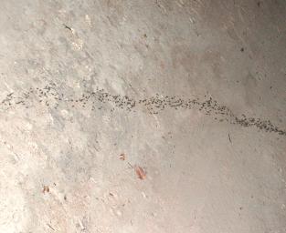 | You can hardly expect a Fourmilab expedition to come back without any pictures of ants! Here is a column of black ants, each almost a centimetre in length, extending from their colony (invisible in the brush) to the carcass of an animal (out of the frame to the left) they were scavenging. This photo was taken by night, illuminated by the spotter's light. The carcass the ants were stripping was insufficiently illuminated to photograph and indistinguishable in any case, probably already worked over by vultures and hyenas before the arthropodal clean-up crew arrived on the scene. |