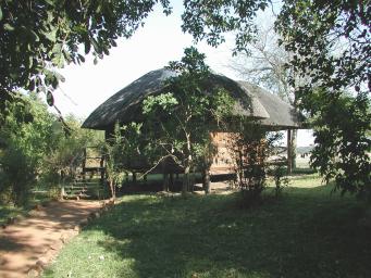 | After landing in Mfuwe we traveled overland to the Kafunta River Lodge in the South Luangwa Valley, part of the Great Rift Valley of Africa. The lodge is situated on the bank of the Luangwa River, adjacent to South Luangwa National Park, home to a wide variety of mammals and more than 450 species of birds. Accommodations are in "chalets" on stilts overlooking the river. The grunts of the abundant hippopotamus in the river can be heard day and night. |