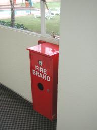 | This box was right outside the hotel room we stayed in our last night in South Africa. Sure, I know that "brand" is the word for "fire" in Afrikaans (and Dutch...and German), but I thought the juxtaposition was rather nice. The hotel, in Sandton, about mid-way between Johannesburg and Pretoria, resembled an armed compound, surrounded by a high wall with razor wire and electrically operated gates. Every time I saw this box I imagined myself running down the hall screaming and waving a flaming torch. |