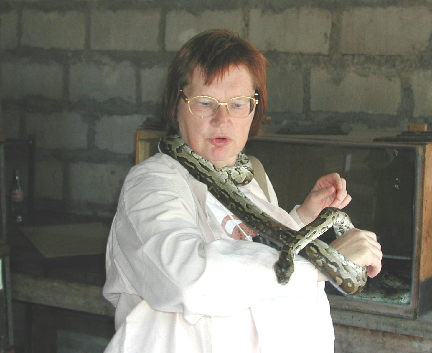 Roxie and friend at the crocodile ranch. The snake is an African Rock Python (