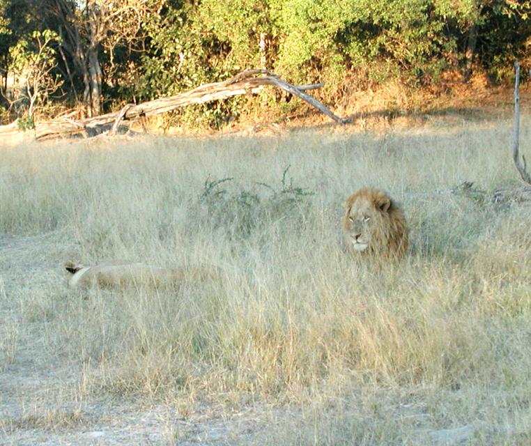Here's another pair of lions we encountered later in the day. This was a mated pair--trust me--but don't look for proof here at G-rated Fourmilab! Neither lion paid the slightest attention to our Land Rover.
