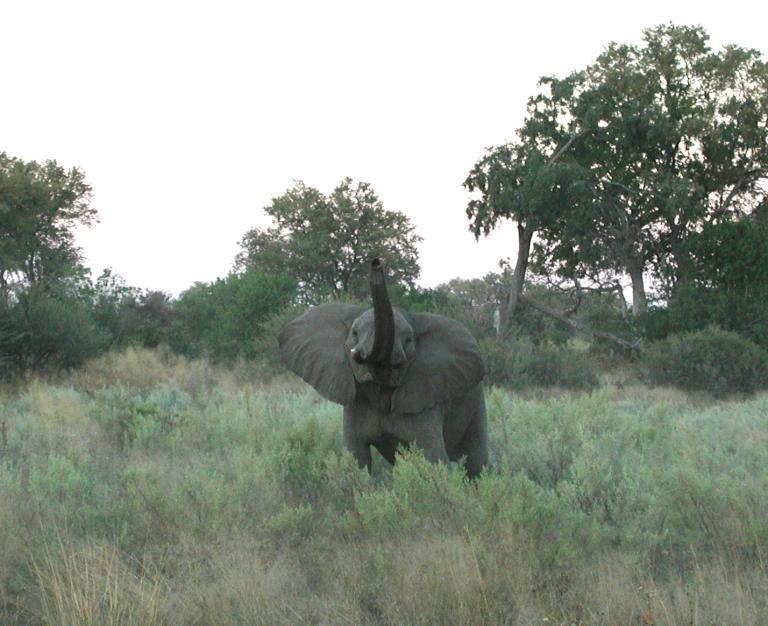 entourage in the bush behind him, trumpeted a warning, "This