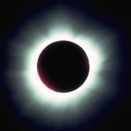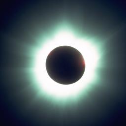 This shorter exposure, taken around mid-eclipse, shows additional detail of coronal filaments and streamers. | |