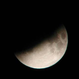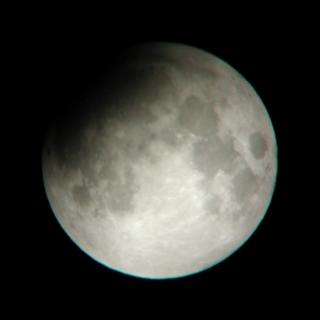 No film or digital image sensor has the dynamic range and logarithmic response of the human eye. Observing the Moon visually during the partial eclipse phase, the eclipsed portion of the Moon's disc was clearly visible to the eye from the time the Moon was about one quarter eclipsed all the way to totality, and lunar features on the eclipsed part were clearly visible in binocular views. An exposure long enough to show the eclipsed disc, however, grossly overexposed the uneclipsed portion (which, after all, was just as bright as the penumbrally eclipsed disc before the start of the umbral phase), causing it to bleed into the rest of the image. All of the partial eclipse photos below were exposed correctly for the illuminated portion and do not show the eclipsed part of the disc except for moments just before and after totality.