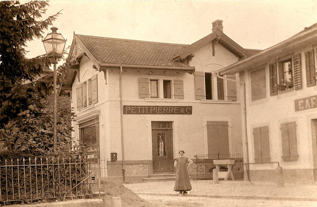 The inscription on the back of the card identifies the woman as Mlle. Lise Leuba, manager of the Petitpierre shop during World War I, so presumably the photo dates from the 1914–1918 period. Note that the signage on the exterior of the building has been toned down quite a bit since the earlier photo in which it appears. The RACN describes this building as «coquet et soigné»—“charming and neat”, and it has kept that appearance admirably over the more than a century it has stood here.