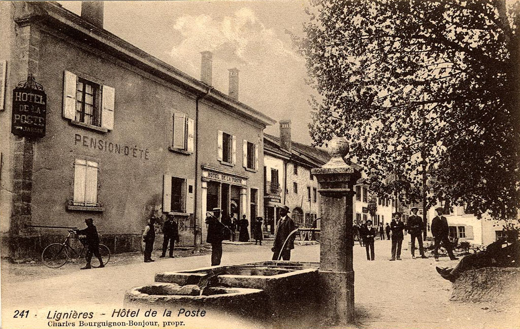 The historical photograph is courtesy of M. Werner Löffel of Lignières, who kindly contributed images of his post card collection to the archives of the Fondation de l'Hôtel de Commune de Lignières.