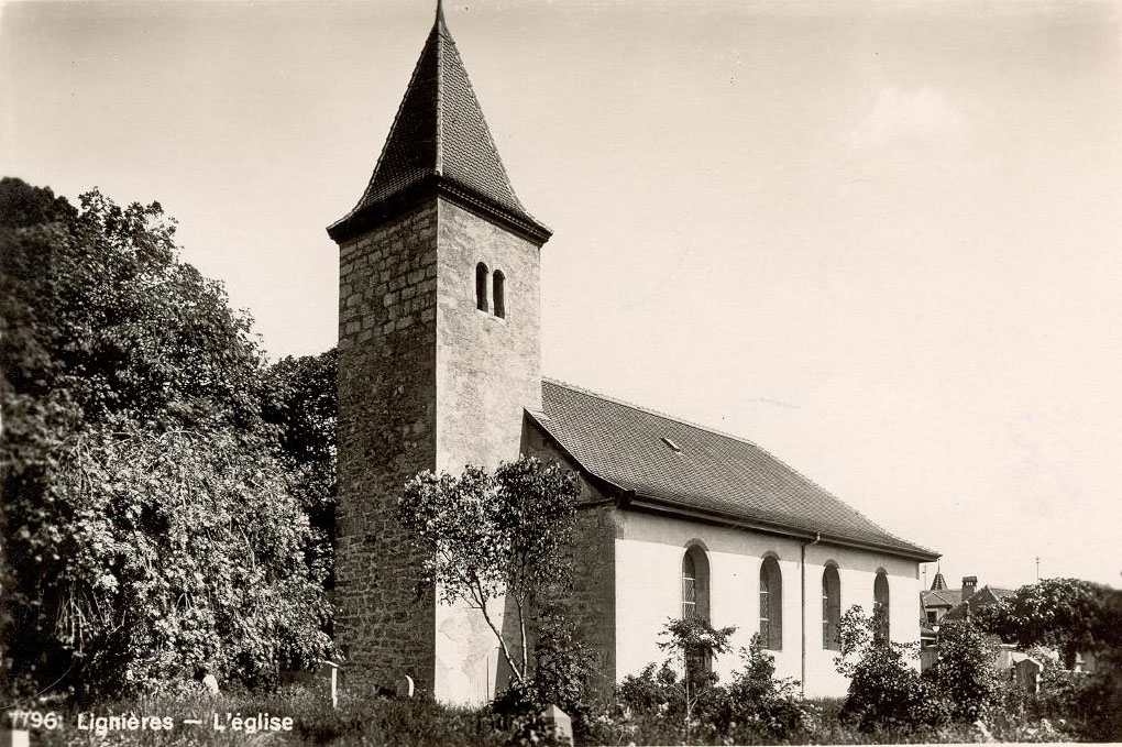 The historical photograph is courtesy of M. Werner Löffel of Lignières, who kindly contributed images of his post card collection to the archives of the Fondation de l'Hôtel de Commune de Lignières.