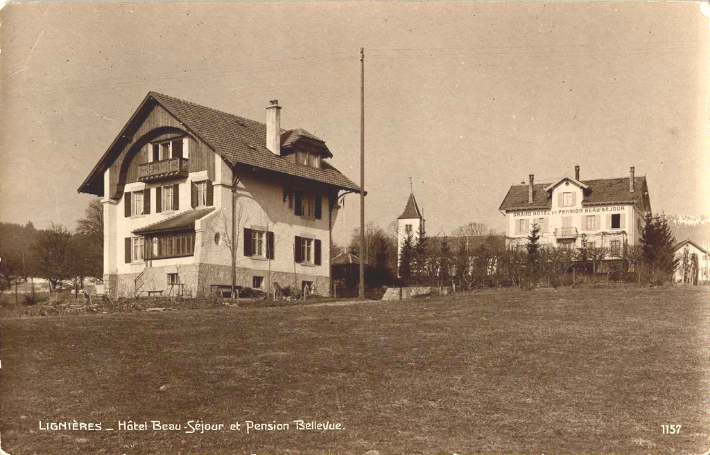 The historical photograph is courtesy of M. Werner Löffel of Lignières, who kindly contributed images of his post card collection to the archives of the Fondation de l'Hôtel de Commune de Lignières.
