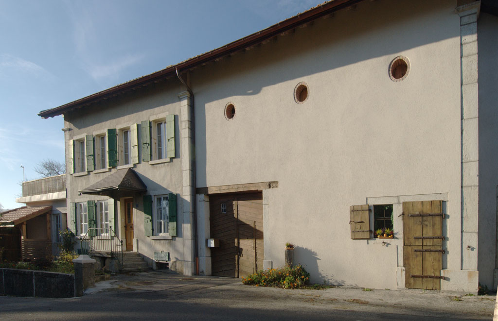 We return from our brief side trip down the Chemin du Gibet, retracing our path, and then proceeding a little further southwest on the Rue du Montilier, where we encounter this building (RACN 010-6456-00083) on the right side at present-day address Rue du Montilier 10. This is a typical 19th century farm house, with the residence at left attached to the barn at the right. The structure has been remodelled on several occasions since its original construction. The limestone lintel above the entrance to the house bears the date 1896, but the original entry on the southwest face (now inside the building) dates from 1834.